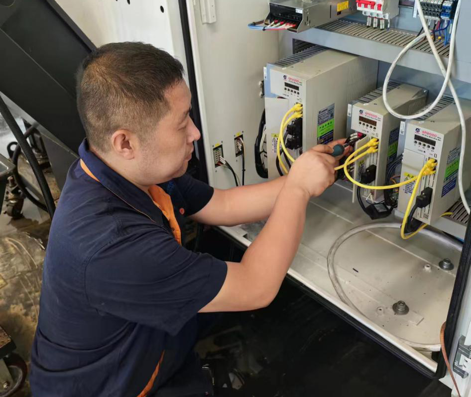 7月29日晚,,,,已经购置火车票准备回沈休假的辛永春接到一通电话,,,,得知泉州某客户受到强台风杜苏芮影响,,,,大部分装备受到差别水平损坏,,,,急需磨练。。。。。。。此次台风影响大、规模广,,,,身为沈阳机床泉州区域效劳员的辛永春明确,,,,客户的装备若是不实时举行检测,,,,将为厥后续恢复生产运营造成较大影响。。。。。。。为此,,,,他连忙退票,,,,逆水而上赶往客户公司举行效劳。。。。。。。与此同时,,,,东莞区域效劳员张晓来也将回家的行程改为刚刚履历过台风的都会,,,,与辛永春一起前往客户公司检查装备损坏情形。。。。。。。