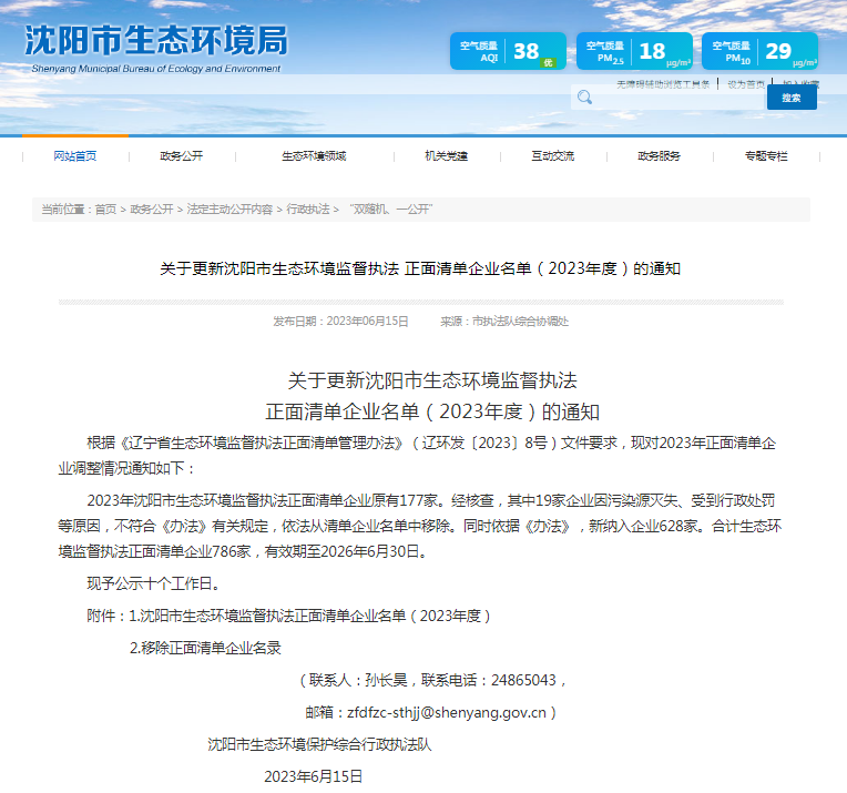 8月18日获悉,,,,,,沈阳市生态情形;;;ぷ酆闲姓执法队宣布《沈阳市生态情形监视执法正面清单企业名单》(2023年度),,,,,,沈阳机床、沈机股份双双上榜。。。。进入《沈阳市生态情形监视执法正面清单企业名单》的企业,,,,,,可享受减免现场检查和增强帮扶等正面激励步伐。。。。生态情形执法部分对进入“正面清单”的企业接纳“无事不扰”的羁系效劳。。。。