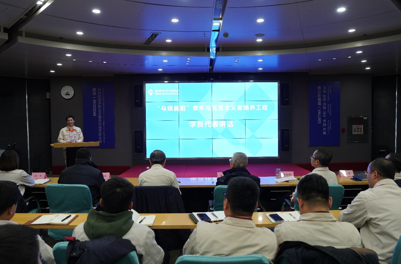 孙纯君宣布青年马克思主义者作育工程一期班正式启动。。。。沈机股份员工刘琳琳作为“青马班”学员代表讲话。。。。