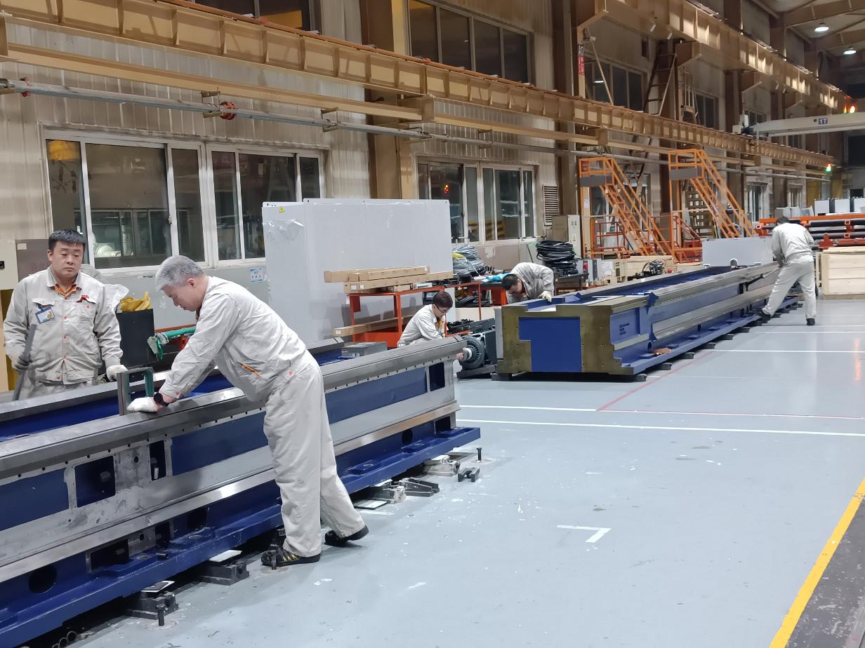 为确保按期交货,,,,沈阳第一机床厂周密安排、强化协同,,,,举行2班制装配来赶工期,,,,防护组装、工装调试等工序迅速响应,,,,实验“产品不落地、停人不;;;;;;被;;;;;;质量、工艺等各职能部分亲近配合、下沉车间、靠前效劳,,,,严把产品质量入口和出厂关,,,,进一步提升产品品质。。。。