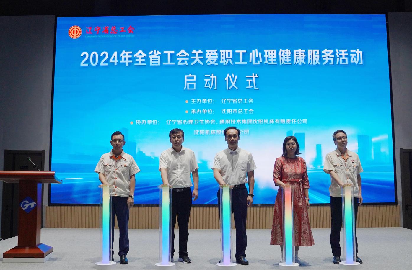 8月15日,,,,,,2024年全省工会关爱职工心理康健效劳活动启动仪式在ng电子游戏新时代“职工之家”举行。。。。。。辽宁省总工会党组成员、副主席张鹏出席启动仪式并讲话。。。。。。沈阳市总工会党组成员、副主席何吉喆致辞。。。。。。辽宁省总工会权益包管部部长刘磊主持启动仪式。。。。。。沈阳机床党委副书记陈立阳,,,,,,沈机股份党委副书记、副总司理、工会主席刘成明出席启动仪式。。。。。。