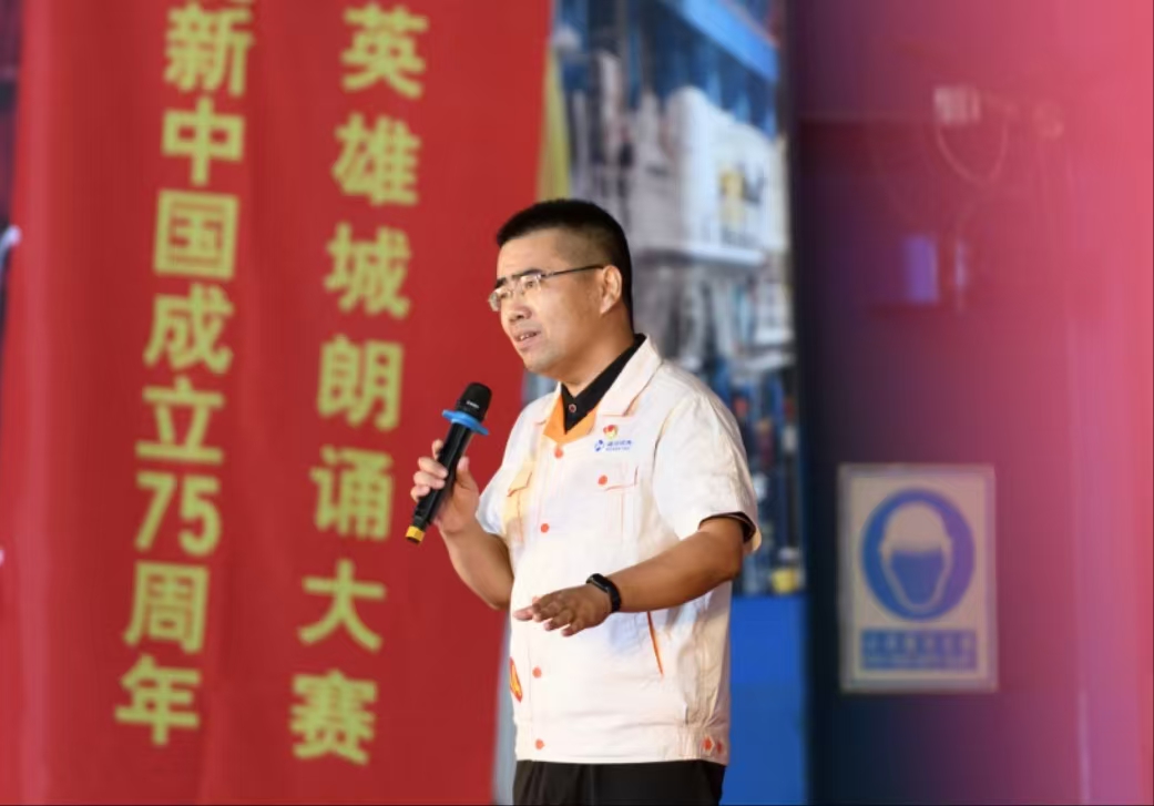 9月3日,,,,,,,由沈阳市委宣传部主理的“庆祝新中国建设75周年礼赞沈阳英雄城朗诵大赛”总决赛在北方重工集团盾构机车间举行。。。。大赛以大车间为舞台,,,,,,,用盾构机做配景,,,,,,,来自ng电子游戏、沈阳铁路信号有限责任公司、沈阳水务集团、中国新闻社辽宁分社、沈阳广播电视台、沈阳开放大学等16家单位的20多位选手,,,,,,,在激昂铿锵的朗诵中,,,,,,,致敬英雄,,,,,,,礼赞沈阳英雄城,,,,,,,配合演绎一场爱国主义的雄浑“交响”。。。。其中,,,,,,,ng电子游戏员工魏传良的参赛节目《国徽,,,,,,,我心中的金色荣光》荣获二等奖。。。。