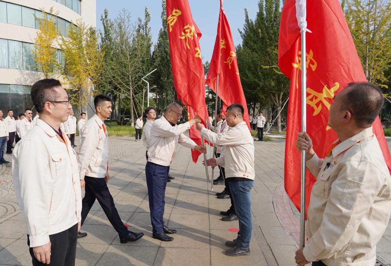 满载收获的喜悦、满怀奋进的激情,,,,,,在丰收的金秋时节,,,,,,ng电子游戏于9月29日举行了“热烈庆祝新中国建设75周年”升旗仪式暨“冲刺四序度、打好收官战”发动会。。。。。。。ng电子游戏董事长、党委书记安丰收出席活动并讲话,,,,,,沈阳机床总司理、党委副书记吴春宇就周全完成年度生产谋划使命作发动,,,,,,沈机股份总司理、党委副书记徐永明主持活动。。。。。。。沈阳机床、沈机股份向导班子成员、中层干部、先进人物代表等110余人加入活动。。。。。。。